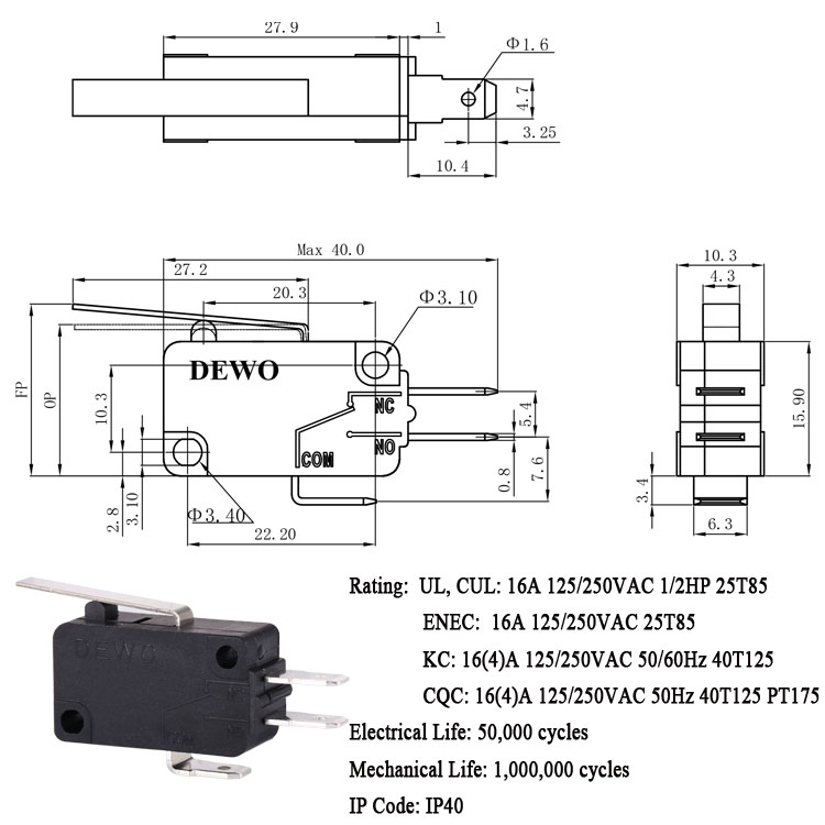 DV-16-A02-NN1-100E型微動開關