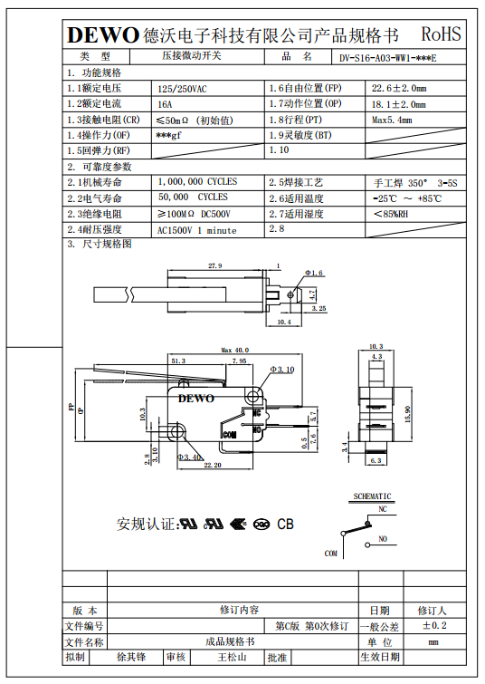 DV-16-A03-WW1-060E型微動(dòng)開(kāi)關(guān)