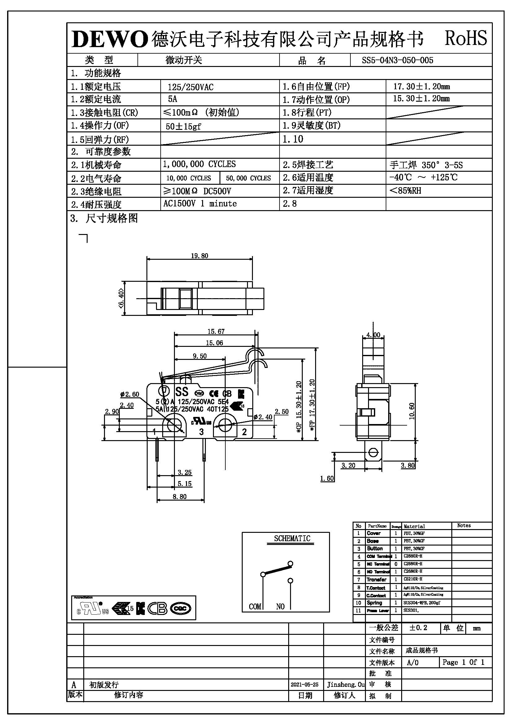 SS5-04N3-050微動(dòng)開關(guān)