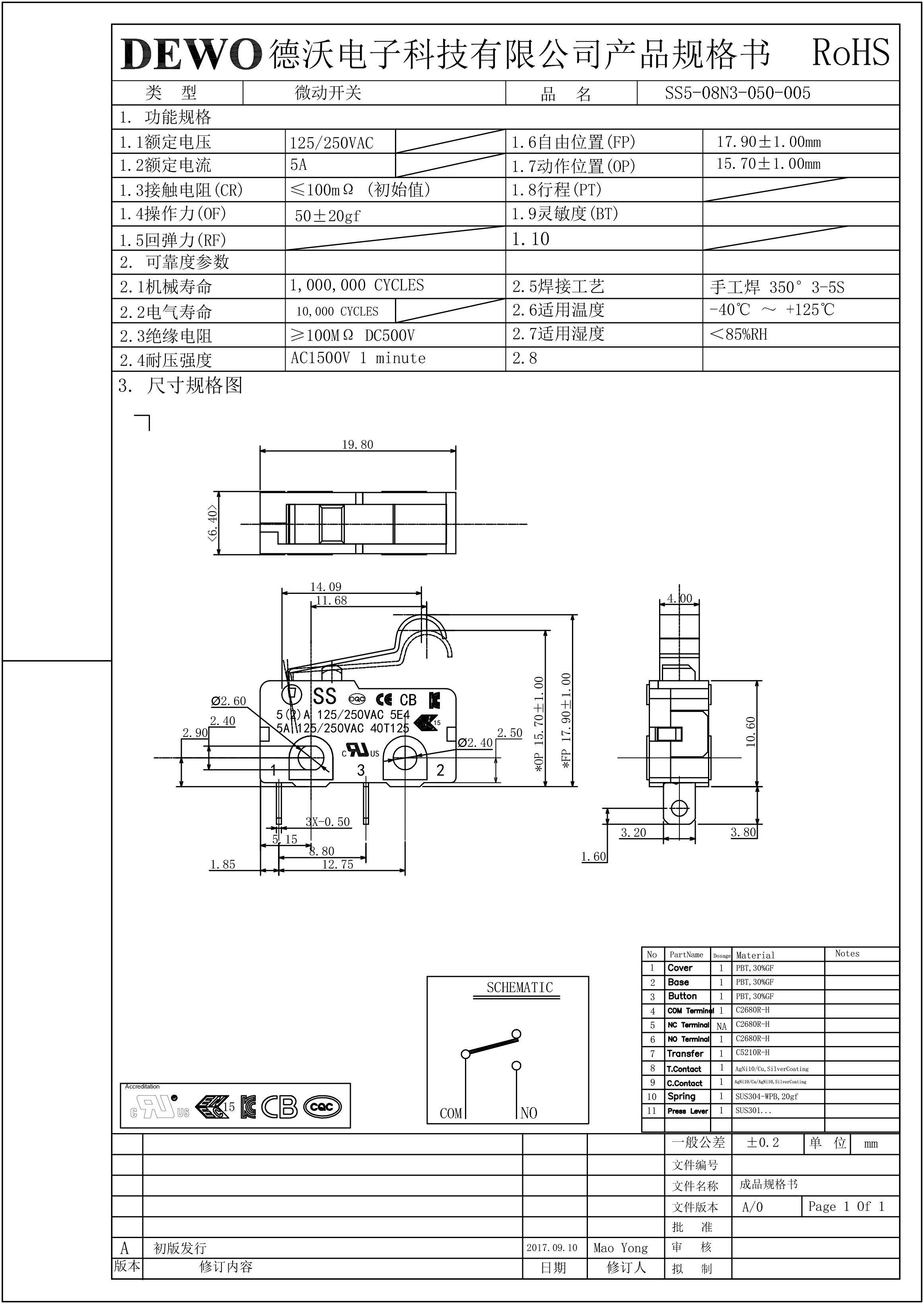 SS5-08N3-050微動(dòng)開(kāi)關(guān)
