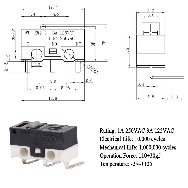 KW2-3-00CR-110-5小型微動開關