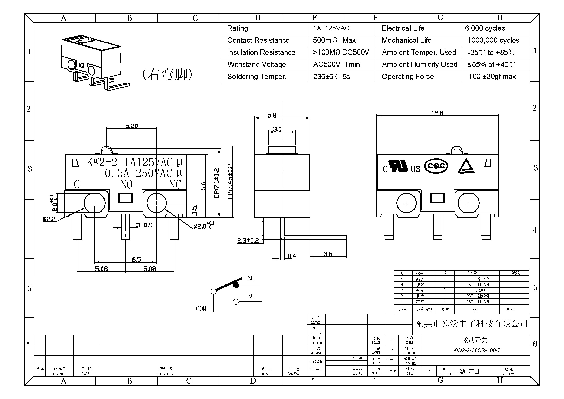 KW2-2-00CR-110-3小型微動(dòng)開關(guān):